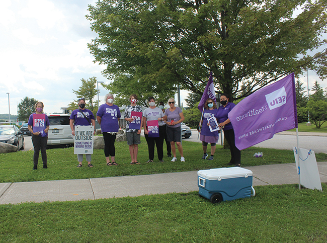Healthcare workers across Ontario, including those at Headwaters, represented by the SIEU Union, held a rally in front of the local hospital on Tuesday (July 27) to speak out against wage cuts, concessions, and Bill 124.